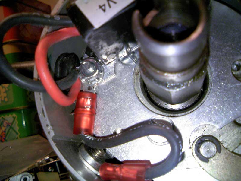 ます。この時、同時に赤黒コードとゴムのグロメットを穴に通し、クランプを取り付けると同時にそのネジにアース