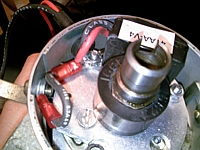 付属のナットでネジ留めします。この時左側のネジにはアースコードを共締めしてベースプレートをデスビ本体にアースします。ナットは非常に掴みにくいので頑張って