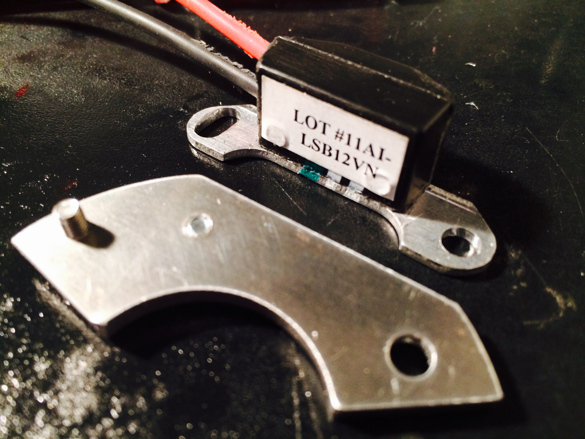カムの山側がIgnitorに向いている状態で0.5〜1.0mmくらいのすき間に合わせ、Ignitorモジュールの右側のM3ネジで長穴を締めます。