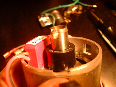 ここまで入ります。デスビシャフトのカムの上面がマ グネットスリーブの内側天面にあたるところまで差し込みます。もちろんこの上にデスビローターが取り付けられることも確認して下さい。