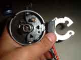 場合はこの上にローターを取り付けます。同時点火用コイルを使う場合はスリーブの上にアルミ製のキーパーをネジ留めし、スリーブが外れないようにする必用