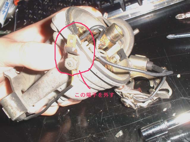 配線は十分な余裕をもって、ローターやバキューム進角装置等に干渉しない位置に這わせて下さい。叉、十分な長さをとったつもりでも配線を繋げる際にひっぱってしまいますとデスビ内部で短くなり、ローターに干渉してしまいます。