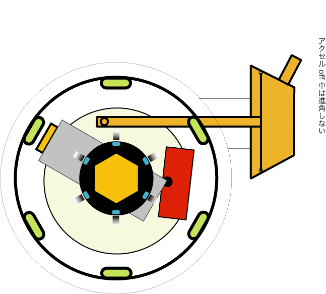 ところが、中にはこの点火位相がよくないケースがあります。 ![]() 上図は点火位相が遅れている状態で、バキューム進角装置がついているデスビに時々見られる症状です。ローターが反時計回りに回転していき、先端がキャップ電極の前を通り過ぎる辺りでようやくマグネットの磁力が検知されるような位置関係になっています。キャップ電極とローターの先端の電極が遠いのでこの間隙をスパークする電圧もここでエネルギーをロスすることになり、プラグの点火も本来よりも弱くなってしまいます。 こういう状態にあるデスビの場合、アイドリングはするものの、少し回転を上げていくとある回転数で頭打ちになって回転が上がらないということが起こります。ローター先端とキャップ電極の向き合う面積が非常に狭く、かつローターは反時計方向に逃げていきますから、回転が上がれば上がるほどローターはキャップ電極から早く遠ざかるので、必要な電流が流れ切らないうちにローターがキャップ電極の前から去ってしまうからです。 この点火位相の遅れを、「点火時期の遅れ」と混同して考えてしまいますとトラブルは解決しません。点火時期を早くしてやればいいだけだ、と、デスビ自体を時計周りに捻ってみますと、IGNITOR(ポイントでも同じ)は確かに時計回り方向に動いてクランクシャフトに対する点火時期は早まりますが、同時にキャップ電極も時計回りに動いてしまいますので、位相の悪さはそのままです。これを修正する為には、バキューム進角装置が引っ張っているポイント台座の位置設定を直してやるしか方法がありません。(強引な方法としてはデスビキャップを反時計周り方向にずれるように加工してしまうという手もありますが....) では、なぜこのような点火位相の遅れた状態になってしまうのでしょうか。 ![]() 実は国産車でよく採用されているバキューム進角装置のついたデスビは、さすがにここまで悪い位相ではありませんが元々少し遅れ気味の位相で初期設定されており、アクセルペダルを踏んでスロットルバルブが開きインテークマニホールドの負圧が上がると(つまり吸引が強くなると)バキューム進角装置がポイント台座を時計廻り(ローターの回転とは逆の方向)に動かし、点火時期と点火位相を早め、ローターとキャップ電極を正面に向かい合わせるるという方式が取られています。 このバキューム進角装置は、インテークマニホールドの負圧によってキノコ形のダイアフラムがひっぱられ、引っ張られたアームがポイント台座を時計回り方向に動かすという仕組みです。 これを動画にすると、以下のようになります。 ![]() つまり、アイドリング時は位相を遅れ気味に設定し、アクセルを踏み込んで負圧が上がってはじめて、ローターとキャプ電極が向かい合って最良の点火位相になるように設計されているわけです。(よく勘違いされますが、このバキューム進角装置はアクセルの開度に応じてだんだん開いていくわけではなく、スロットルバルブが開けば負圧によりすぐにいっぱいまで進角します。) ところが旧車のチューニングをする際に、このバキューム進角装置を殺してしまうということがよくあります。デスビはバキューム進角以外にも遠心力で働くガバナー進角装置がデスビシャフトに組み込まれていますが、このガバナー進角装置は回転上昇に伴う遠心力でポイントカムから上のシャフト上部が進角方向に首を振るというものですので、首を振ればカムが進角するのと同時にローターも進角方向に進みますから、IGNITOR(又はポイント)とキャップ電極の位相関係はまったく変りませんので、どの回転域においてもアイドリング時の遅れた位相のままになります。回転が高くなる程ローターとキャップの向かい合う面積は大きく必要となるのに対し、この条件の悪い位相状態のまま、しかも回転が上がれば上がるほどローターはキャップ電極から早く遠ざかろうとしますので、位相状態がかなり悪い場合には回転が上がらなくなってしまいます。 時々ユーザー様から、IGNITORを組み込んだのにある回転数から回転が上がらないがこれは不良品ではないかというクレームを戴く事がございます。まさにこの位相の悪さが疑われるところですが、通常この位相を調べるのは難しいのでなかかかお気づきになられないと思います。IGNITORは非常に単純なパーツでポイントが行うスイッチング作用を半導体で代行するに過ぎません。ある回転数から上は突然廻る事がないというような回転数に応じてなにかを変えるような高度な機能を持ち合わせているわけではありませんので(IGNITOR2は除く)、少なくともアイドリングする以上はまず間違いなく故障や不良品ではありません。デスビ周りや気化器周りに何かトラブルがあるはずなのですが、新しく導入したパーツというのは何かとトラブルの原因ではないかという疑惑にさらされ易い運命にあるのが辛いところございます。 生産から20年〜30年と経