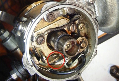 キャロル360、三菱ジープJ3Rなど、三菱のスモールデスビで画像の形状のポイント(ポイントを手前に見た場合に左側が開く)を使用しているデスビに適合します。