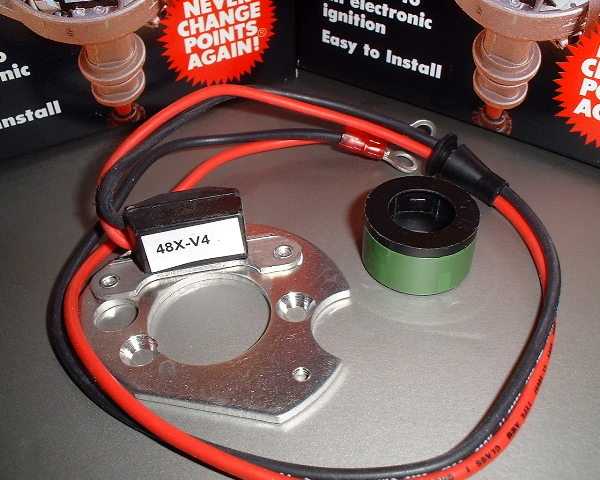 ※サニーに搭載されているA型エンジンやダットサンに搭載されているJ型エンジンなどは、シャフトのポイントカムの上部に襟巻き状の突起のあるタイプのデスビの場合が多く、このシャフトにはマグネットスリーブを通すことが出来ない為に、ポイントカムの起伏を直接読んでいくモジュールを搭載したこのこのモデルが適合となります。このモジュールはマグネットスリーブを使用しません。4気筒/6気筒どちらにも使用でき、又、突起のない通常のデスビの4気筒車/6気筒車にも取り付けることが出来ます。