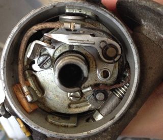 18R-Gエンジン用デスビ、昭和40年までのクラウンRSタイプなどの、ポイントの止めねじが一つで支点軸がプレートに残るタイプの4気筒デスビ用のポイントレスキットです。