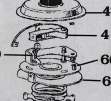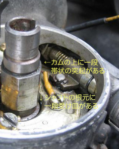 下の画像のように、ポイントカムの上に一段帯状の突起がある、シャフトの根元に一段径の大きな受け皿がある